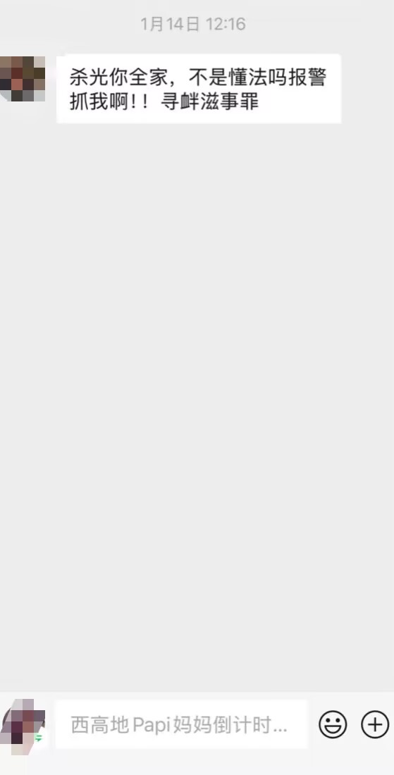 1月26日,北京宠物狗中毒刑案的受害犬主“西高地papi姆妈”李女士(化姓)告诉封面新闻记者,自一审宣判以来,她在各个平台平庸收到是曲或贬抑信息。此前有一东说念主给她发信息称“要杀光她全家”,在她报案后,近日警方对该须眉作出了罚金1000元的行政处罚。